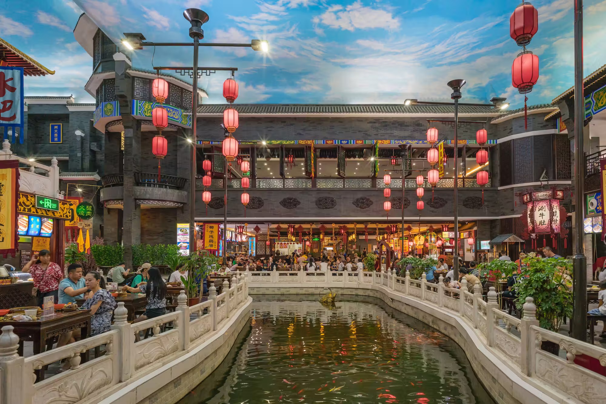 里边亭台楼榭,雕梁画栋,小桥流水,锦鲤戏莲,特色小吃,应有尽有,胜似千年的东京夜市