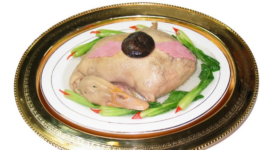套四宝:河南开封的汉族传统名肴,堪称豫菜一绝。套四宝绝就绝在集鸡、鸭、鸽、鹌鹑之浓、香、鲜、野四味于一体,四只全禽层层相套,个个通体完整,无一根骨头。每当酒席宴会上过几道菜之后,这道菜便用青花细瓷的汤盆端上,展现在食客面前的是那体形完整、浮于汤中的全鸭。其色泽光亮,醇香扑鼻。当食完第一层鲜香味美的鸭子后,一只清香的全鸡便映入眼帘;鸡肉吃后,滋味鲜美的全鸽又出现的面前,最后又在鸽子肚里露出一只体态完整,肚中装满海参丁、香菇丝和玉兰片的鹌鹑。